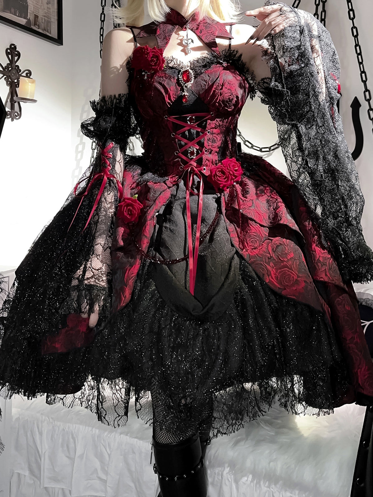 【予約商品】Rose Lolita Dark Style High Waist Dress YOU0179